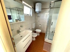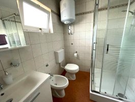 Kupaonica : kupaonica s wc-om i tušem, ručnici na raspolaganju (1 veliki, 1 mali po osobi po tjednu), fen, bide, perilica rublja.