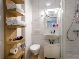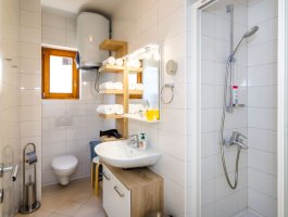 Kupaonica : kupaonica s wc-om i tušem, ručnici na raspolaganju (1 veliki, 1 mali po osobi po tjednu), sušilo za kosu.