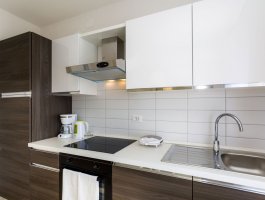 Kuhinja : stol i stolice za sve osobe, posuđe za kuhanje te pribor za jelo u apartmanu, kuhinjske krpe uključene, električni štednjak, pećnica, hladnjak sa zamrzivačem, filter aparat za kavu, mikrovalna, kuhalo za vodu, perilica suđa.
