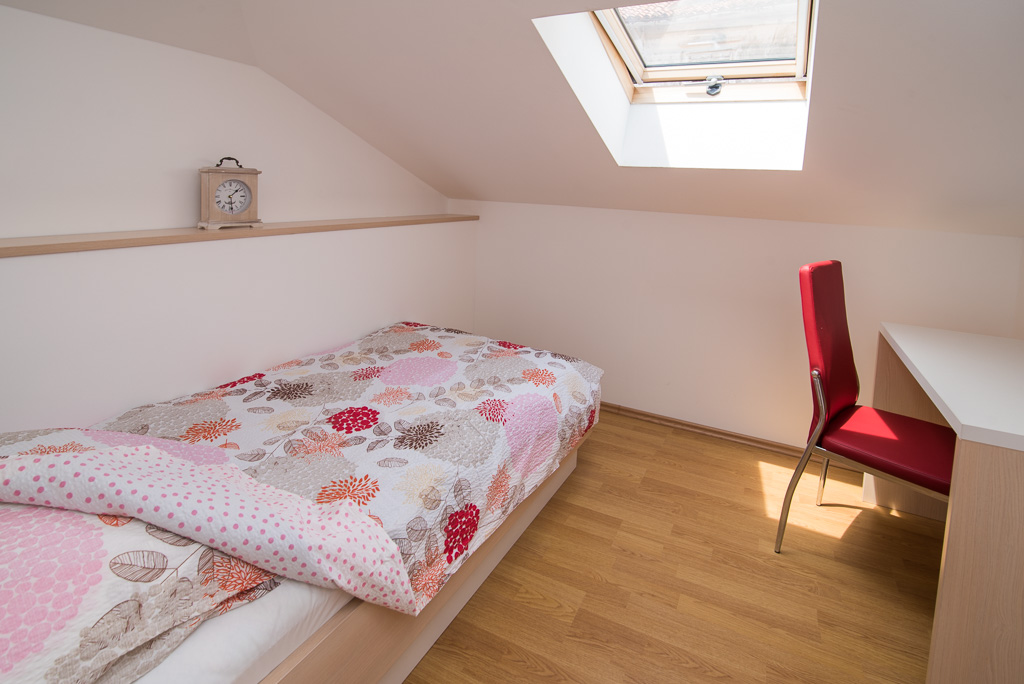 Spavaća soba 1: dvokrevetna soba, bračni krevet, laminat, krevetnina se mijenja svakih 7 dana.