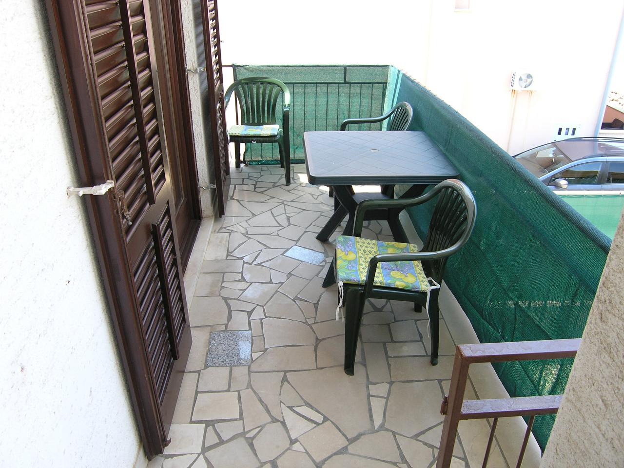 Balkon : vlastiti balkon, natkriven, stol i stolice na raspolaganju, djelomičan pogled na more.