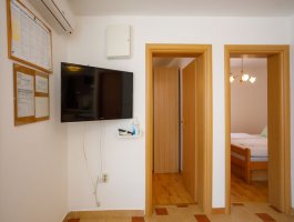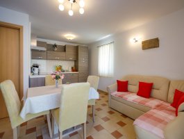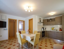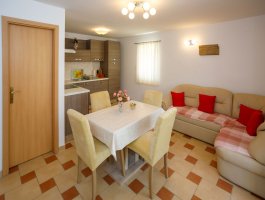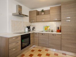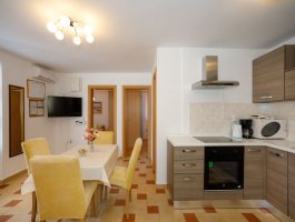 Kuhinja : kuhinjska niša, posuđe za kuhanje te pribor za jelo u apartmanu, kuhinjske krpe uključene, električni štednjak, hladnjak sa zamrzivačem, mikrovalna.