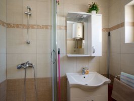 Kupaonica : kupaonica s wc-om i tušem, ručnici na raspolaganju (1 veliki, 1 mali po osobi po tjednu), fen.