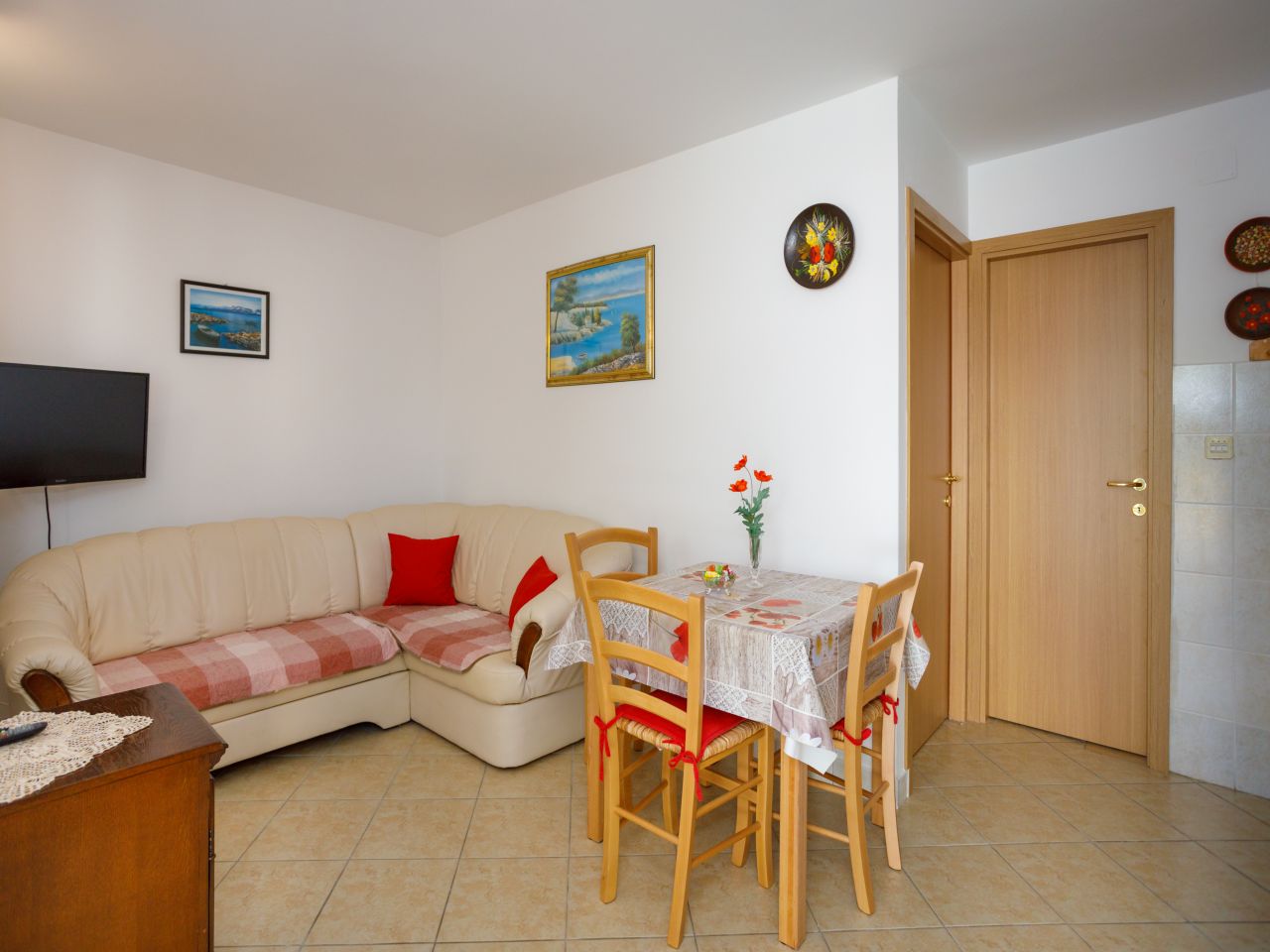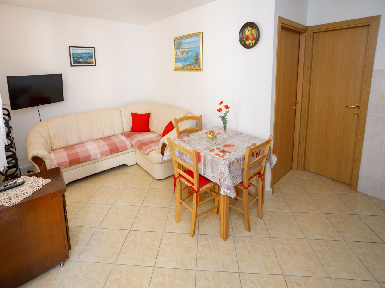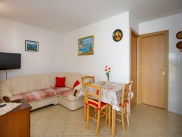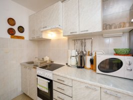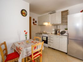 Kuhinja : stol i stolice za sve osobe, posuđe za kuhanje te pribor za jelo u apartmanu, kuhinjske krpe uključene, električni štednjak, pećnica, hladnjak sa zamrzivačem, filter aparat za kavu, mikrovalna.