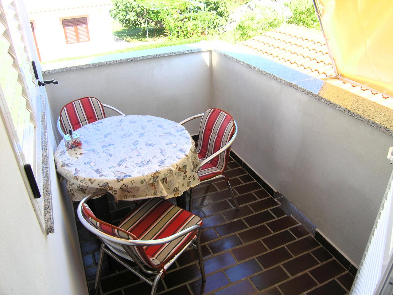Balkon : vlastiti balkon, djelomično natkriven, stol i stolice na raspolaganju, tenda.