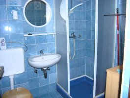 Kupaonica : kupaonica s wc-om i tušem, ručnici na raspolaganju (1 veliki, 1 mali po osobi po tjednu).