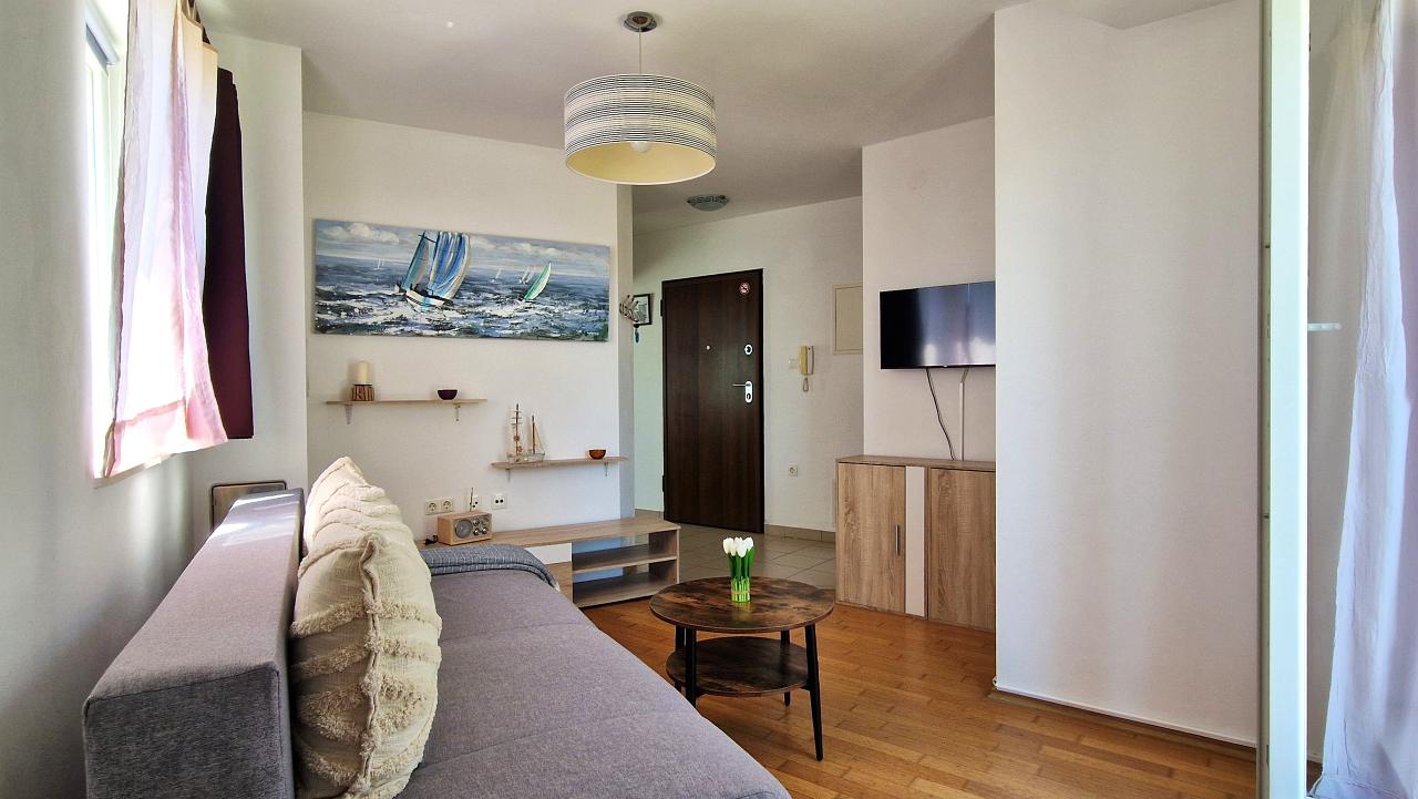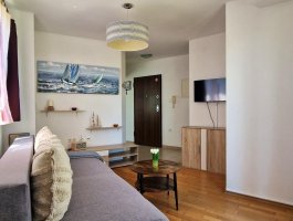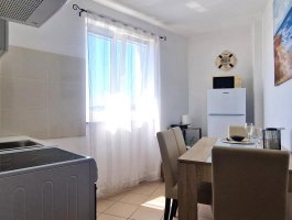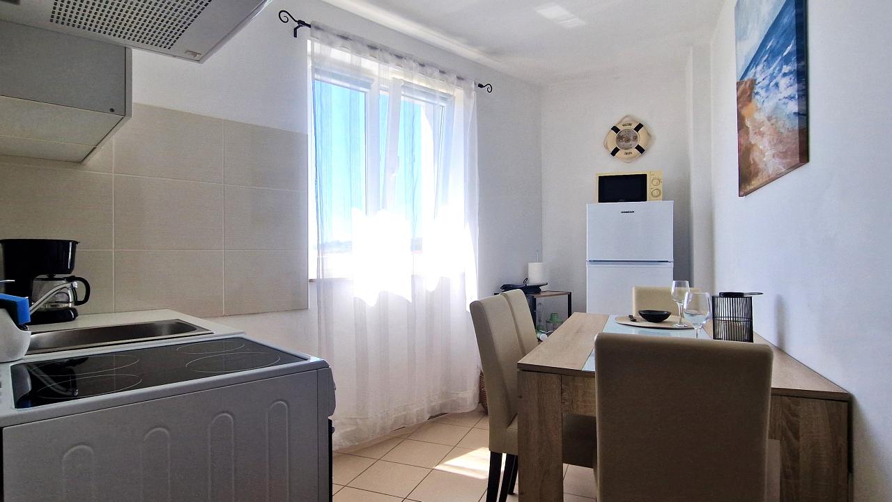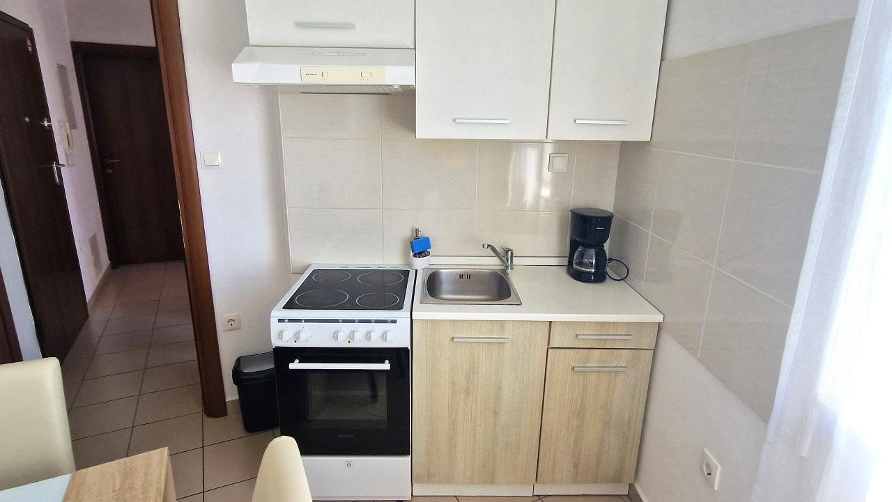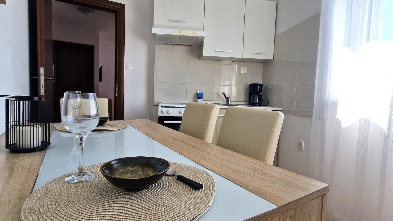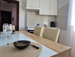 Kuhinja : stol i stolice za sve osobe, posuđe za kuhanje te pribor za jelo u apartmanu, kuhinjske krpe uključene, električni štednjak, pećnica, hladnjak sa zamrzivačem, filter aparat za kavu, mikrovalna, kuhalo za vodu