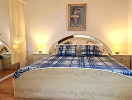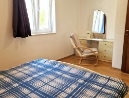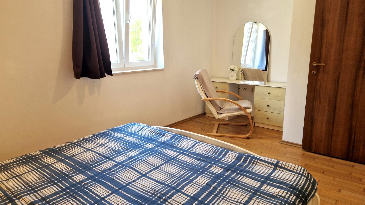 Spavaća soba : dvokrevetna soba, bračni krevet, parket, krevetnina se mijenja svakih 7 dana.