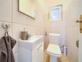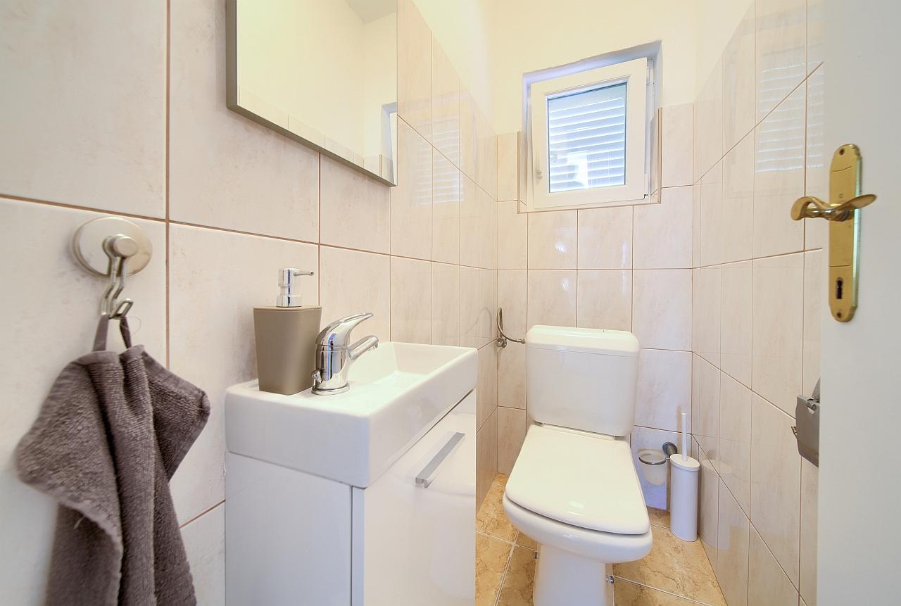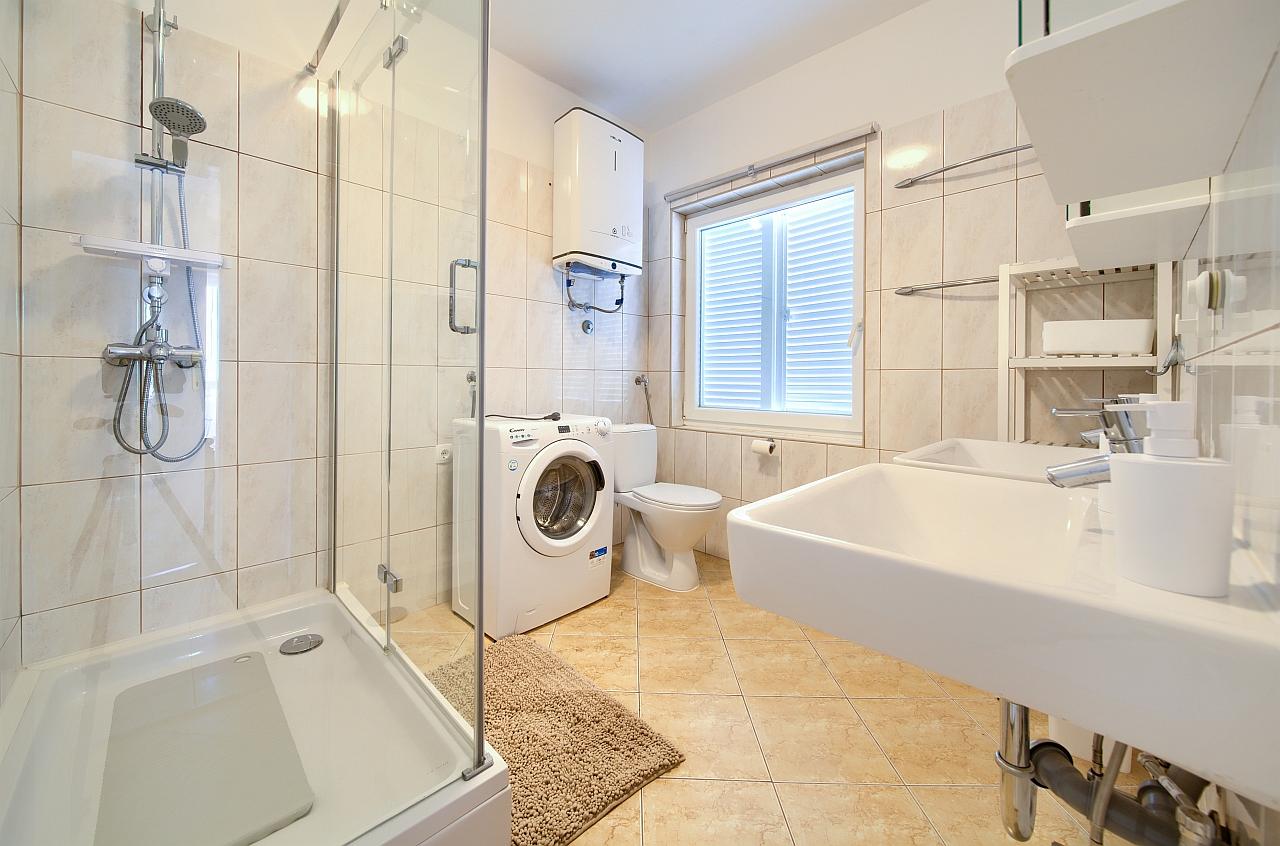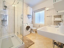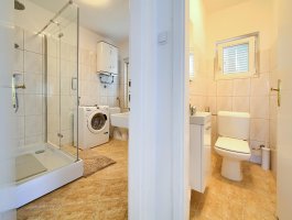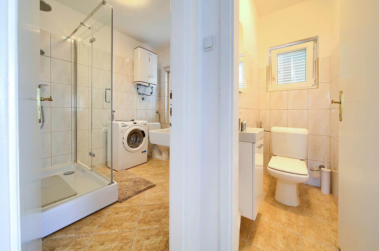 Kupaonica : kupaonica s wc-om i tušem, perilica za rublje, fen, ručnici na raspolaganju (1 veliki, 1 mali po osobi po tjednu).