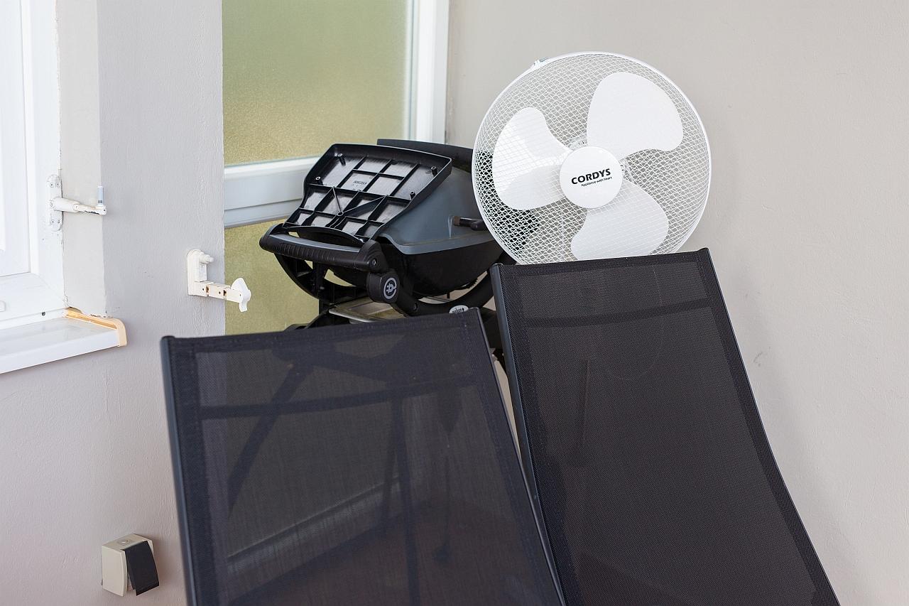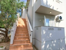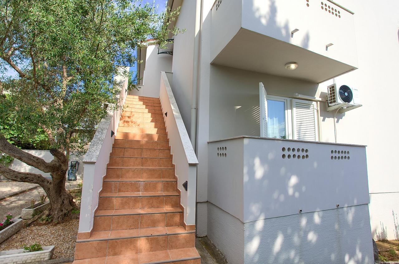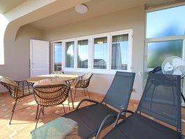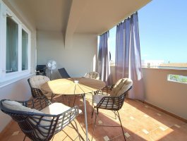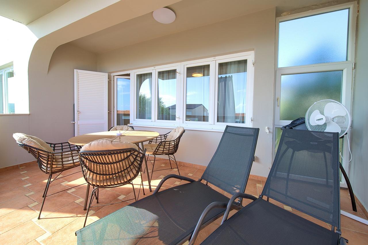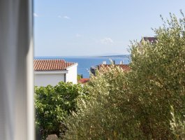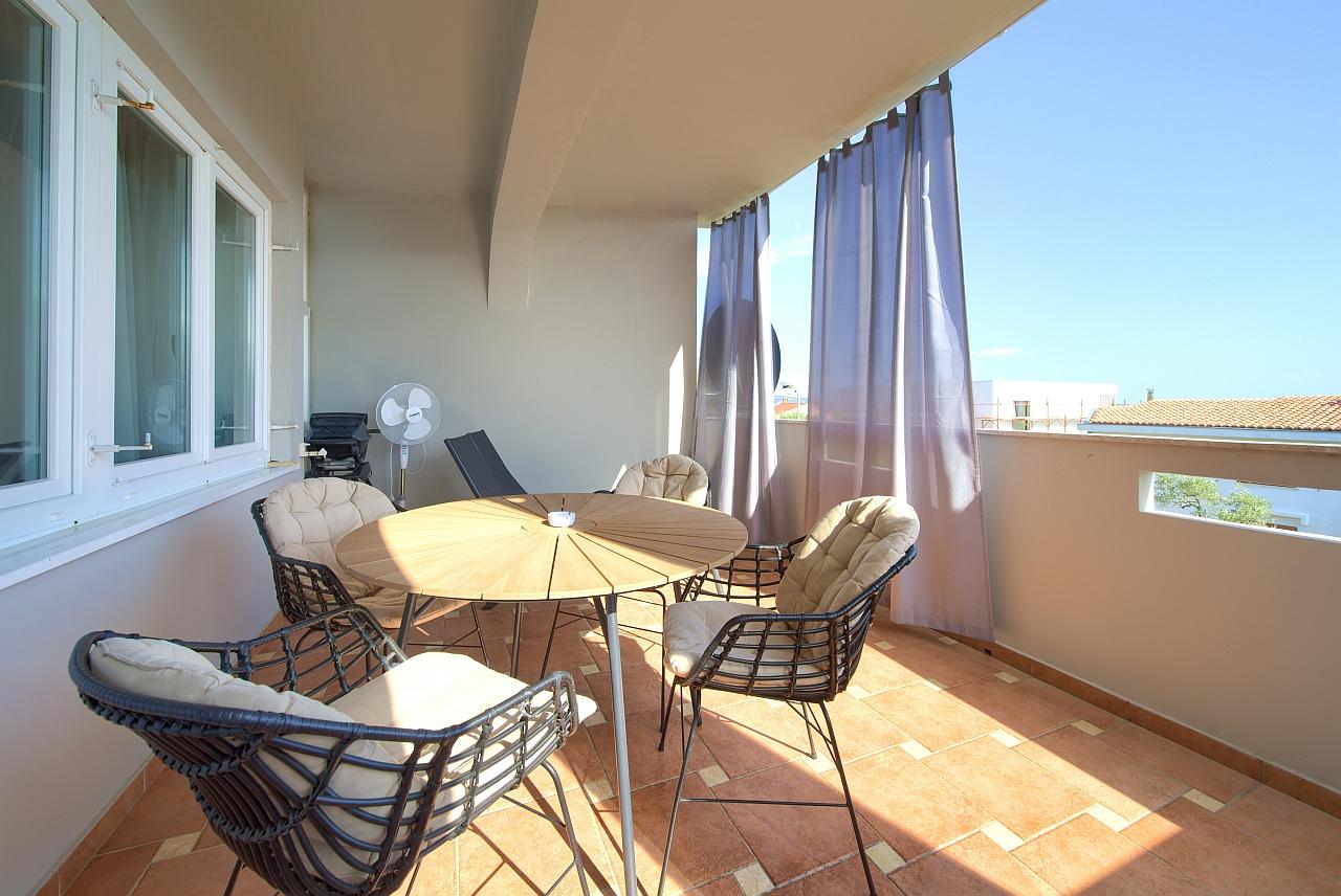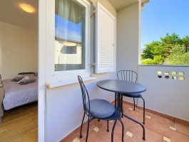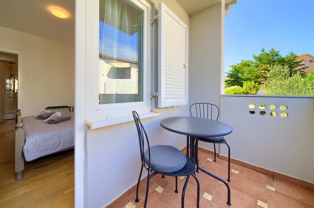 Balkon : vlastiti balkon, natkriven, pogled na more, stol i stolice na raspolaganju.