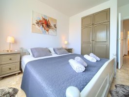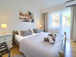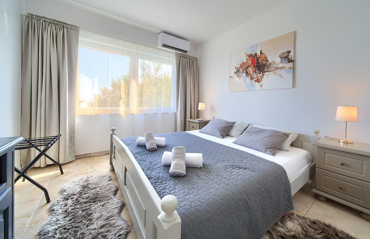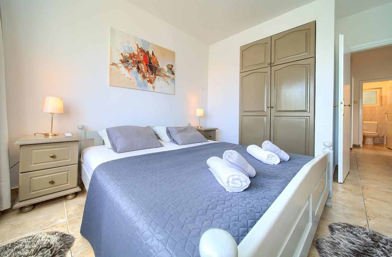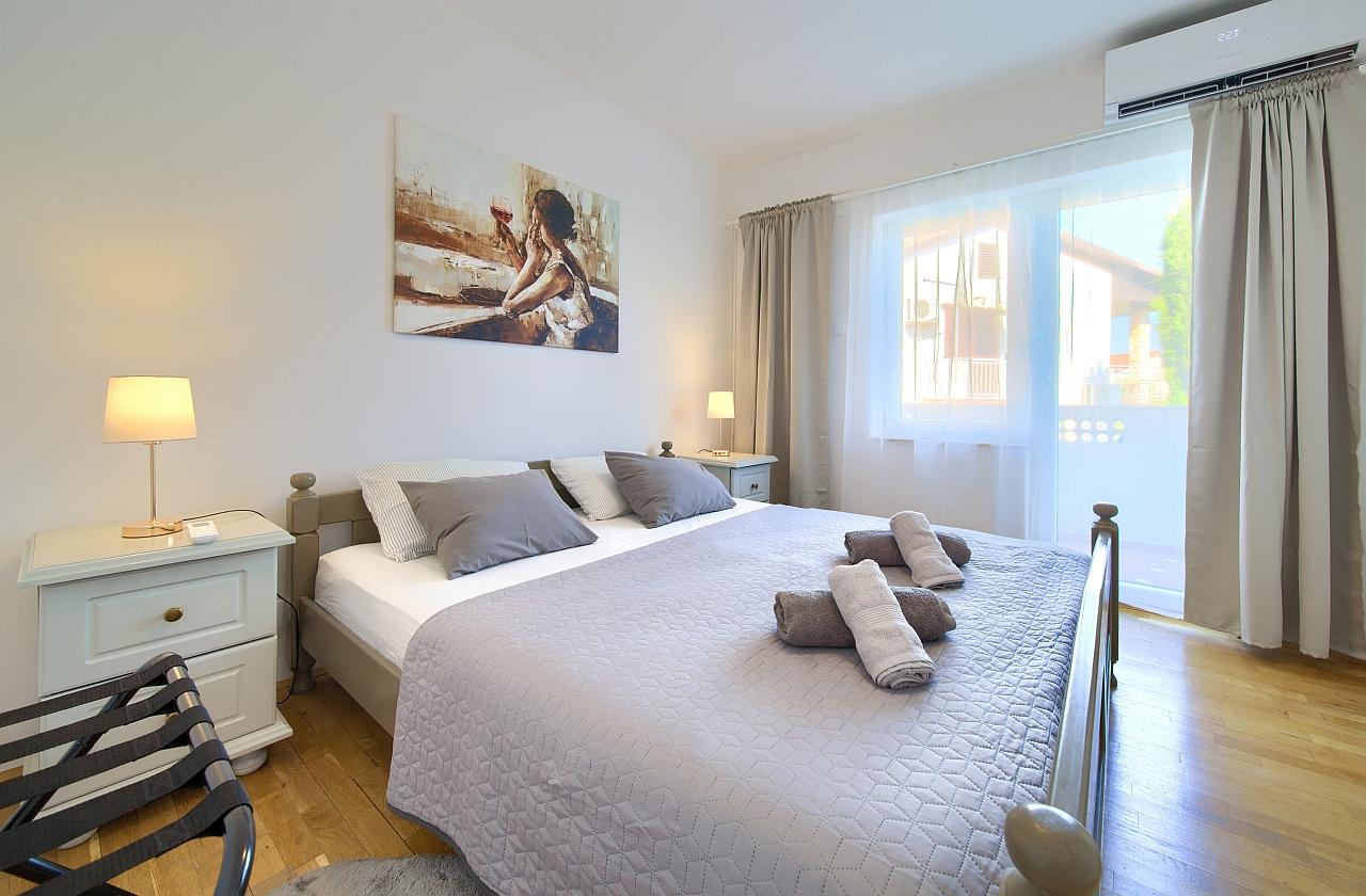 Spavaća soba 1: dvokrevetna soba, bračni krevet, klima, balkon, laminat, krevetnina se mijenja svakih 7 dana.