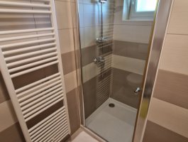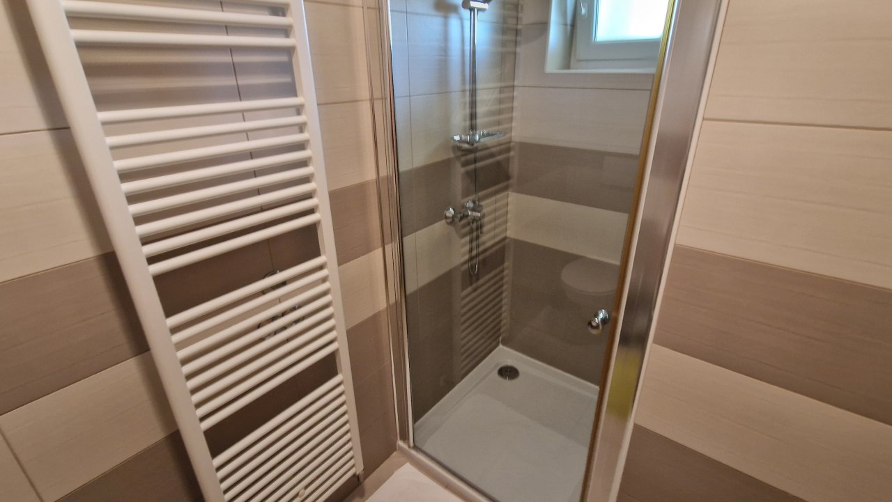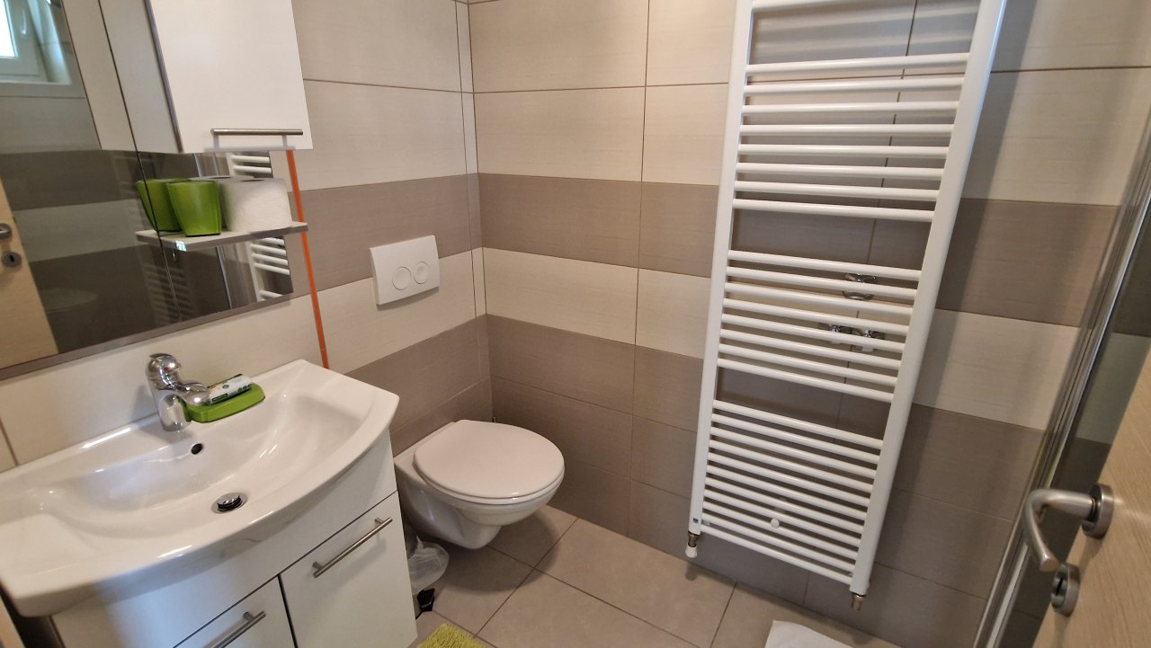 Kupaonica : kupaonica s wc-om i tušem, ručnici na raspolaganju (1 veliki, 1 mali po osobi po tjednu), fen.