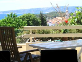 Balkon : vlastiti balkon, djelomično natkriven, pogled na more, stol i stolice na raspolaganju, suncobran.
