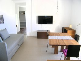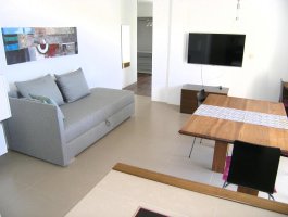 Dnevni boravak : dnevni boravak, blagovaonica i kuhinja su jedna prostorija, stol i stolice za sve osobe, jedan pomoćni ležaj na kauču, TV sat.