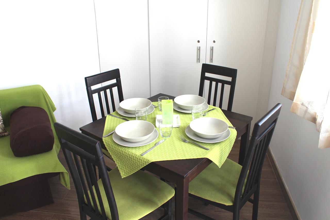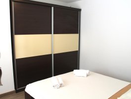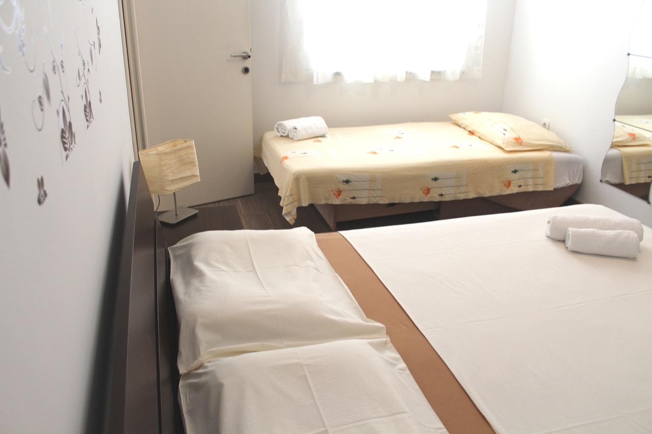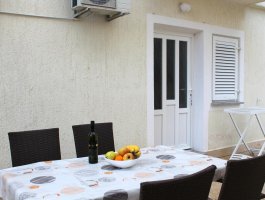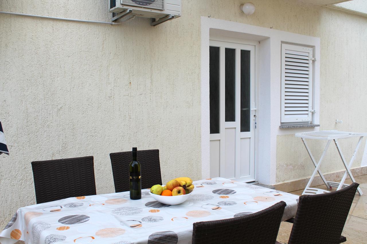 Kuhinja : kuhinjska niša, stol i stolice za sve osobe, posuđe za kuhanje te pribor za jelo u apartmanu, kuhinjske krpe uključene, električni štednjak, pećnica, hladnjak bez zamrzivača, filter aparat za kavu.