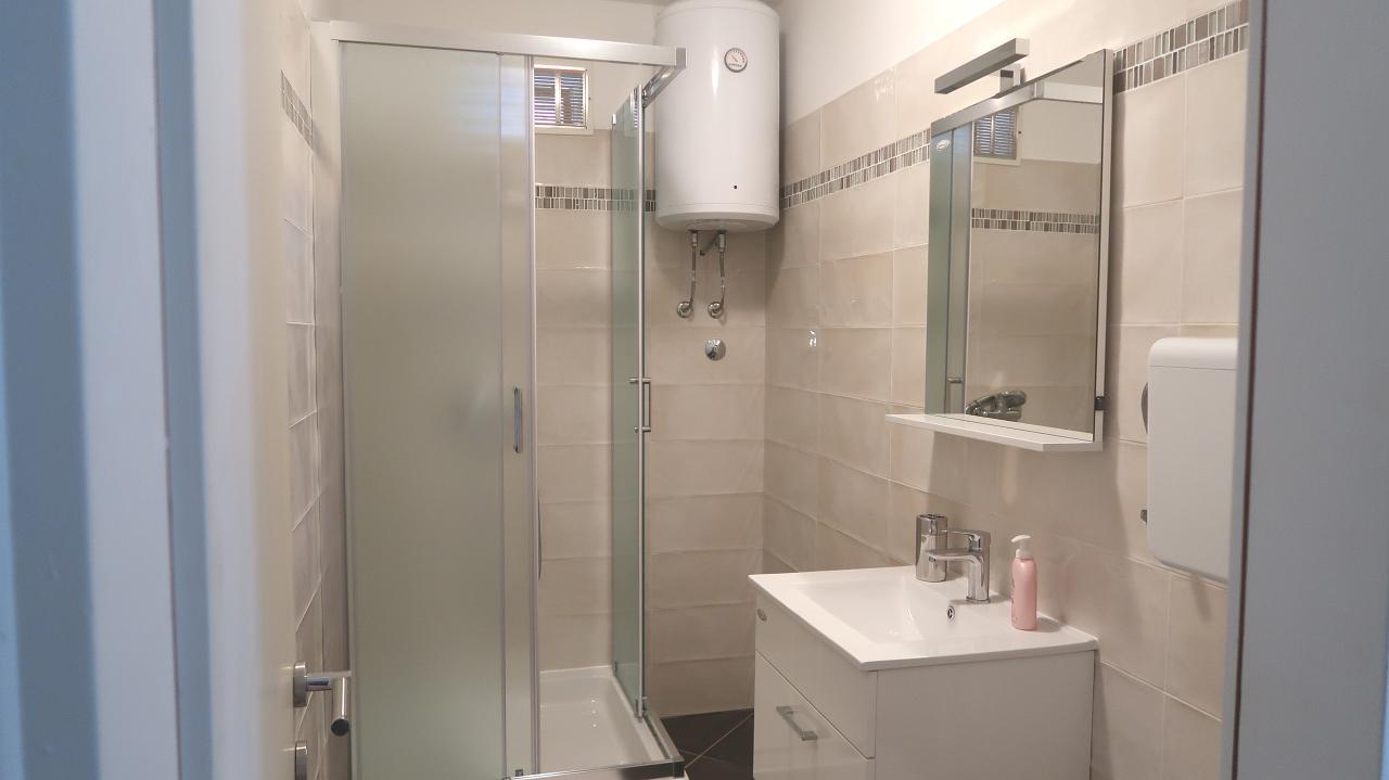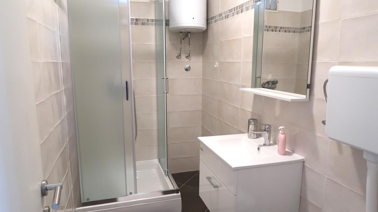 Kupaonica : kupaonica s wc-om i kadom, ručnici na raspolaganju (1 veliki, 1 mali po osobi po tjednu).