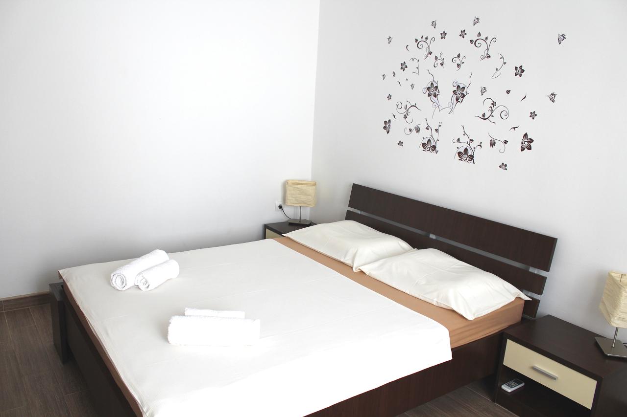Spavaća soba : dvokrevetna soba, bračni krevet, pločice, krevetnina se mijenja svakih 7 dana.