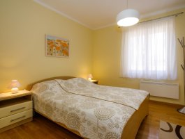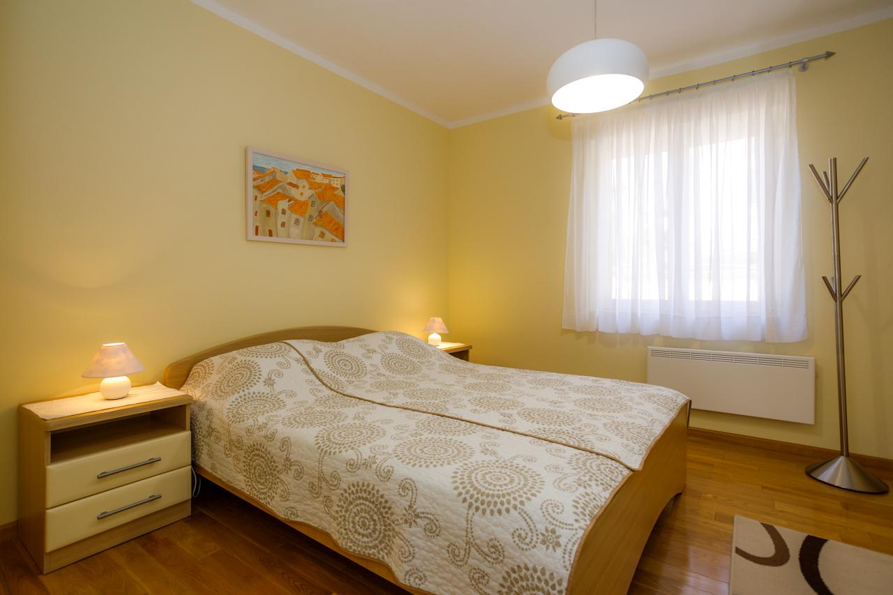 Spavaća soba : dvokrevetna soba, bračni krevet, parket, krevetnina se mijenja svakih 7 dana.