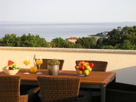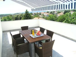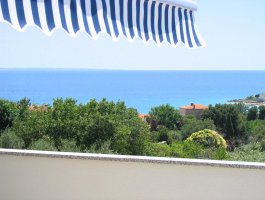 Balkon : vlastiti balkon, djelomično natkriven, pogled na more, stol i stolice na raspolaganju, tenda.