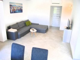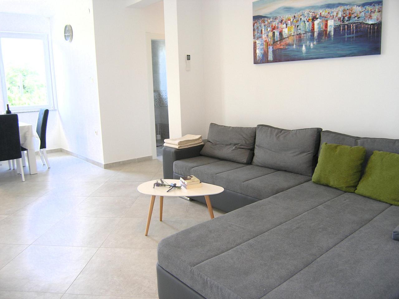 Dnevni boravak : dnevni boravak je zasebna prostorija, jedan pomoćni ležaj na kauču, TV sat, pločice, balkon s pogledom na more.