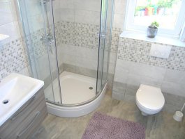 Kupaonica 1: kupaonica s wc-om i tušem, sušilo za kosu, ručnici na raspolaganju (1 veliki, 1 mali po osobi 2 x na tjedan).