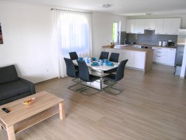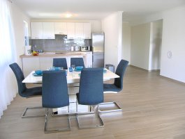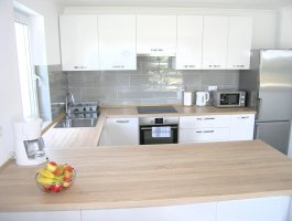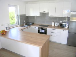 Kuhinja : stol i stolice za sve osobe, pribor za jelo i posuđe, kuhinjske krpe uključene, električni štednjak, pećnica, hladnjak sa zamrzivačem, aparat za kavu, mikrovalna pećnica, perilica posuđa.