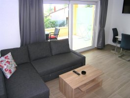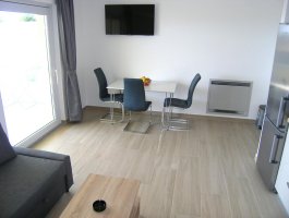 Kuhinja : stol i stolice za sve osobe, posuđe za kuhanje te pribor za jelo u apartmanu, kuhinjske krpe uključene, električni štednjak, hladnjak sa zamrzivačem, filter aparat za kavu, kuhalo za vodu, mikrovalna, perilica za suđe.