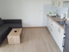 Kuhinja : stol i stolice za sve osobe, posuđe za kuhanje te pribor za jelo u apartmanu, kuhinjske krpe uključene, električni štednjak, hladnjak sa zamrzivačem, filter aparat za kavu, kuhalo za vodu, mikrovalna, perilica za suđe.