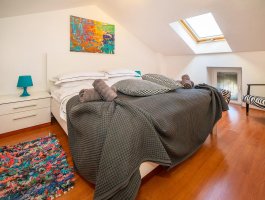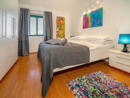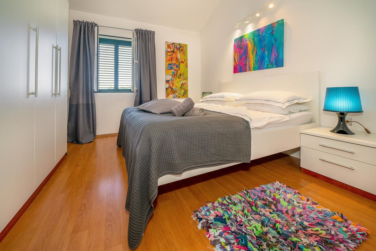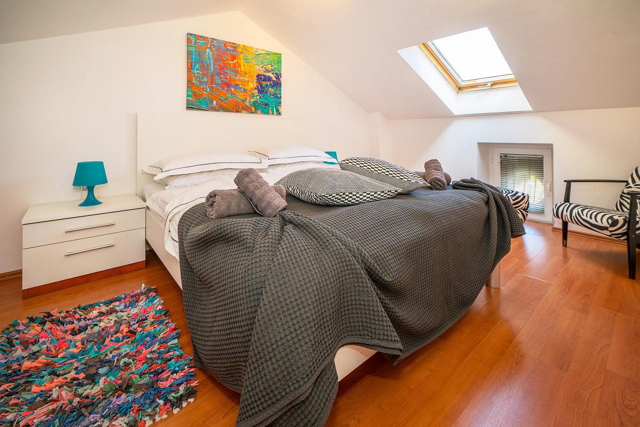 Spavaća soba : dvokrevetna soba, bračni krevet, laminat, krevetnina se mijenja svakih 7 dana.