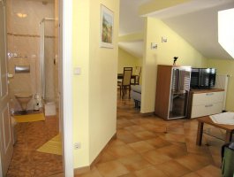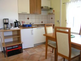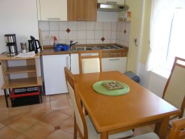 Kuhinja : kuhinjska niša, posuđe za kuhanje te pribor za jelo u apartmanu, kuhinjske krpe uključene, električni štednjak, hladnjak s malim zamrzivačem, filter aparat za kavu.