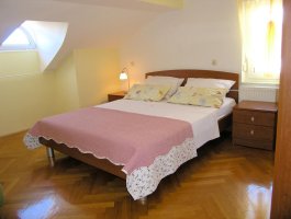 Spavaća soba : dvokrevetna soba, bračni krevet, parket, krevetnina se mijenja svakih 7 dana.
