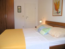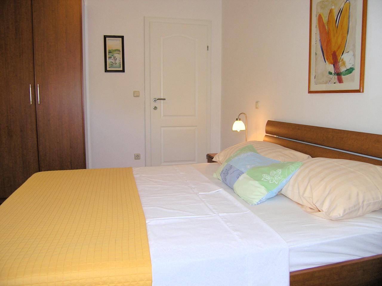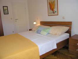 Spavaća soba : dvokrevetna soba, bračni krevet, parket, krevetnina se mijenja svakih 7 dana.