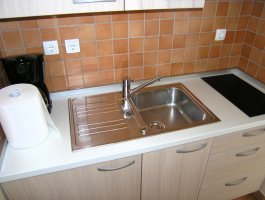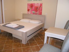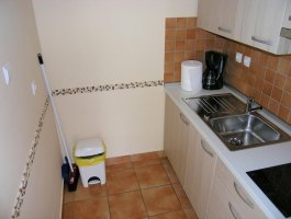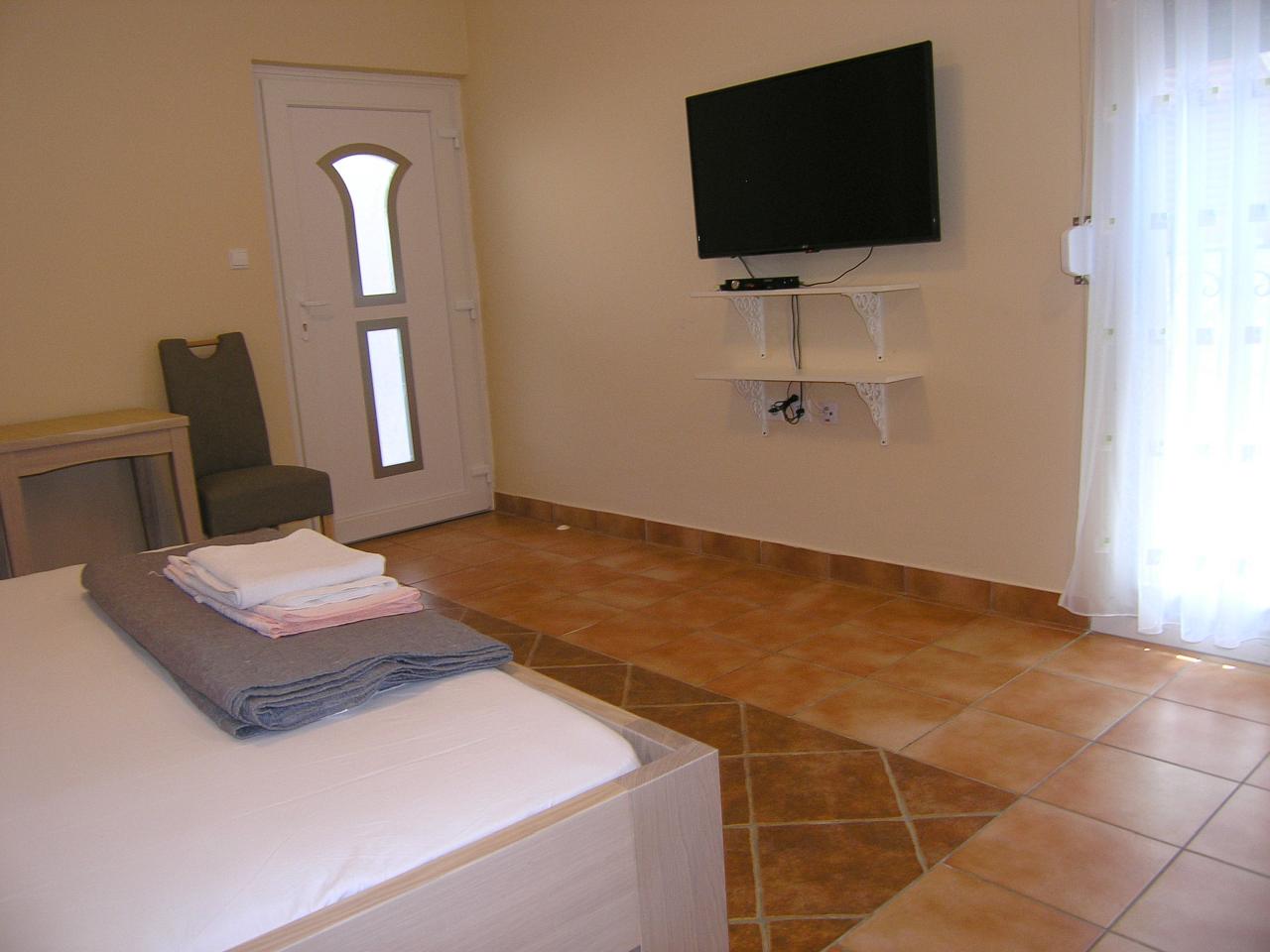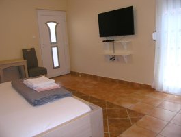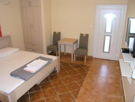 Studio (sve u jednoj prostoriji) : bračni krevet, stol i stolice za sve osobe, kuhinjska niša, posuđe za kuhanje te pribor za jelo u apartmanu, kuhinjske krpe na raspolaganju, hladnjak bez zamrzivača, električni štednjak, filter aparat za kavu, SAT-TV, pločice.
