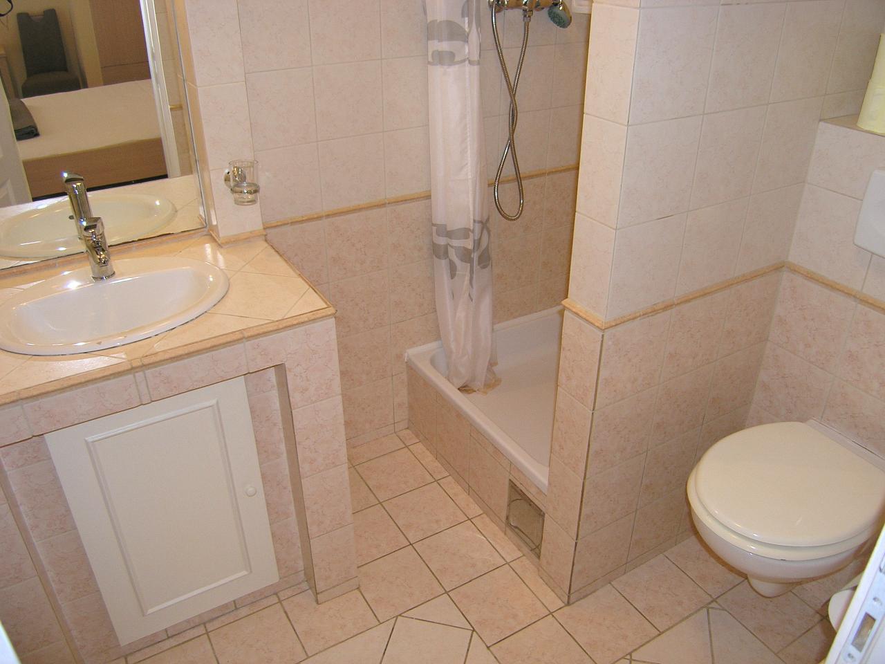 Kupaonica : kupaonica s wc-om i tušem, ručnici na raspolaganju (1 veliki, 1 mali po osobi po tjednu).