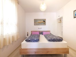 Spavaća soba : dvokrevetna soba, bračni krevet, TV sat, laminat, s terasom, krevetnina se mijenja svakih 7 dana.