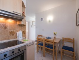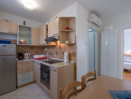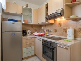 Kuhinja : posuđe za kuhanje te pribor za jelo u apartmanu, kuhinjske krpe uključene, električni štednjak, pećnica, hladnjak sa zamrzivačem, filter aparat za kavu.